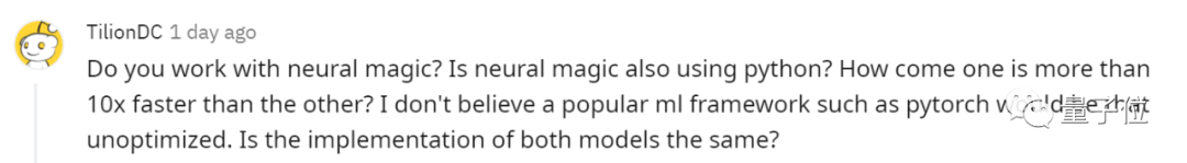 Neural Magic也使用python吗?为什么一个比另一个快10倍以上?我不相信像pytorch这样传统的机器学习框架不会得到优化。两种模型的实现是否相同?