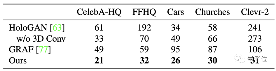 研究人员将GIRAFFE与基于2D的GAN进行了比较。