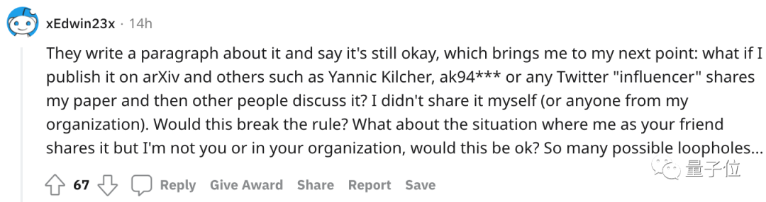 此前有网友就提出“是否可以在arXiv匿名投稿”这种具体的解决办法。