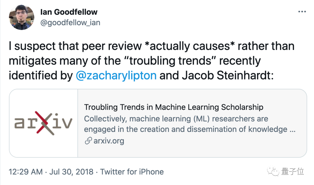 此前,GAN的发明人Ian Goodfellow就曾炮轰同行评审机制,认为是这一制度导致了如今AI会议论文下降。