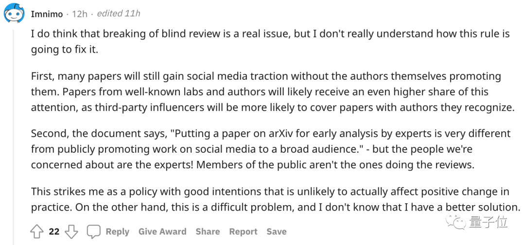 这在一定程度上破坏了双盲评审机制,并由此引发许多人对“社交媒体+arXiv”模式的不满。