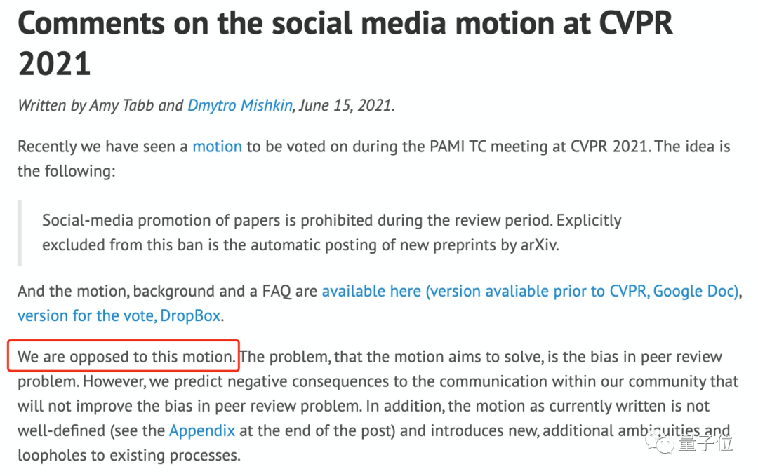 基于这些原因,有2位CV研究人员在禁令投票表决期就联名发帖表示反对。