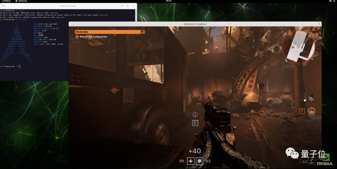 硬件配置是RTX 3060显卡+联发科天玑1200 ARM处理器,嗯,跑在Linux上的那种。