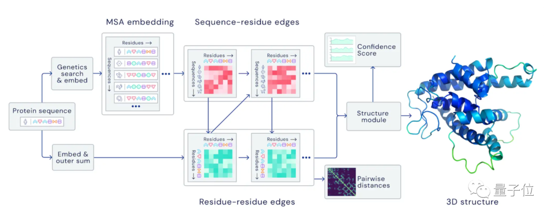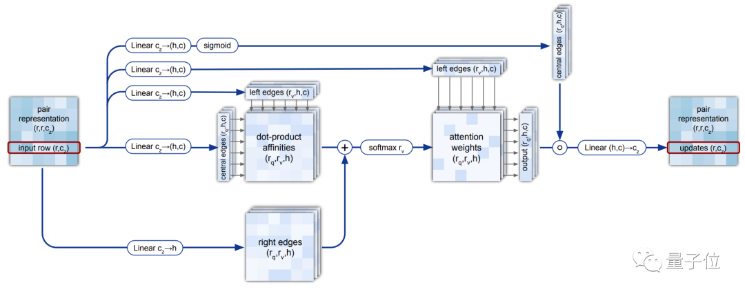 研究人员用Attention机制构建出一个特殊的“三重自注意力机制(Triangular self-attention)”,来处理计算氨基酸之间的关系图。