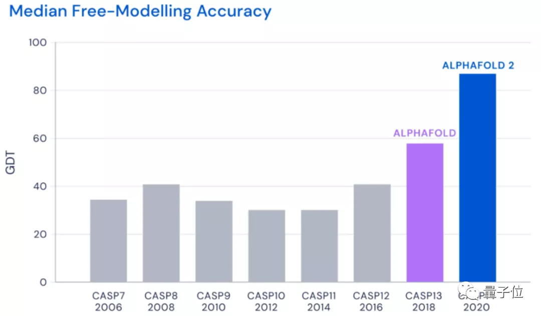 在CASP13中,AlphaFold预测的准确性还只有不到60分。