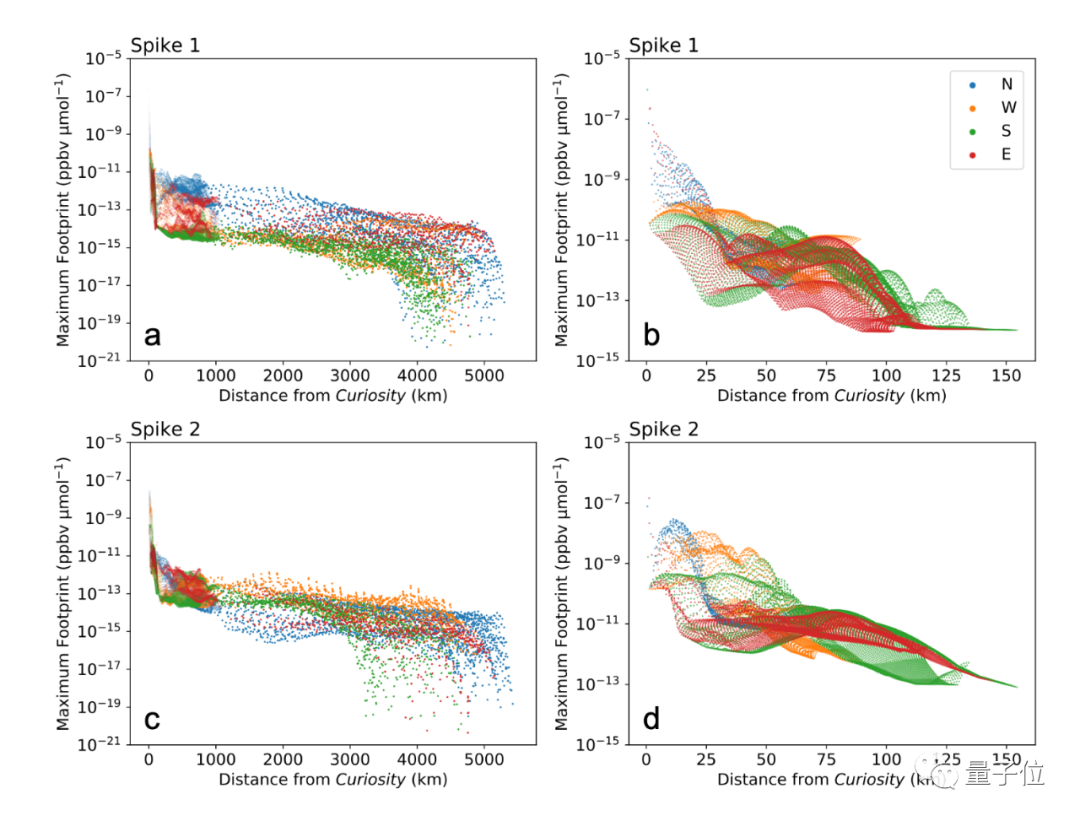 “数据表明,在西北部的陨石坑底,位于好奇号西南偏西方向,有一个活跃的甲烷排放点”研究人员在论文中描述到,“我们为好奇号选择的着陆点,刚好位于甲烷活动位置附近,这件事大概得益于巧合”