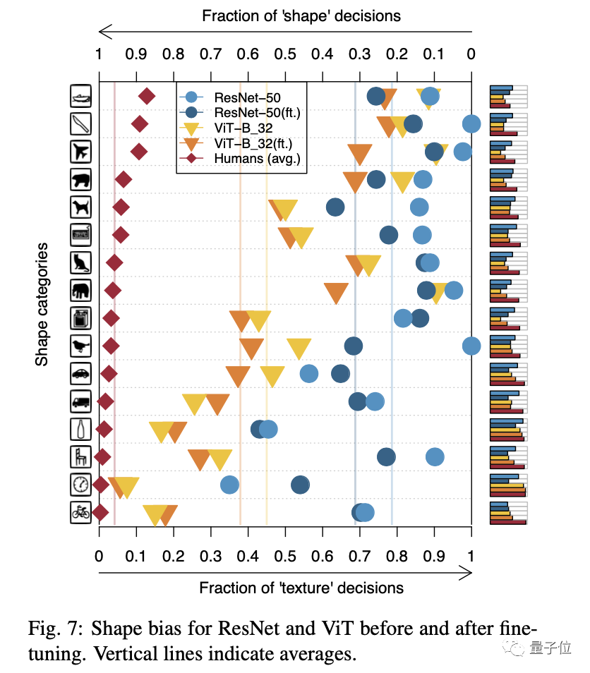 从结果可以看出,ViT和人类一样,更倾向于通过形状判断物体。