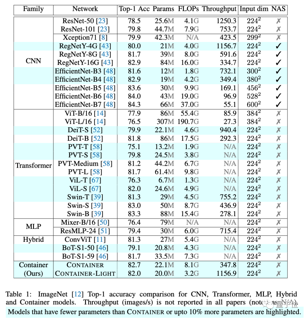 港中文提出更是将CNN、Transformer以及MLP都统一在一起,提出了用于多头上下文聚合的通用结构Container,取得了超越三大架构及混合架构的成绩。
