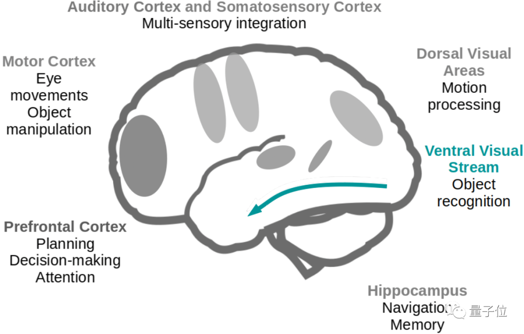 大脑的不同区域对视觉信息有不同的处理方式,CNN主要模仿的是“腹侧流 (Ventral Stream)”在物体识别、分类上的运作方式。