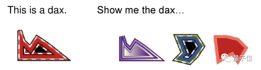 用形状分类物体也是人类的倾向。不信的话,试试回答下图的问题:右面的三个物体中哪个与左边的是同类?
