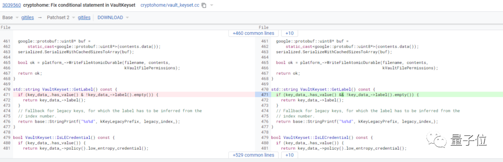 这位网友仔细对比两份代码后发现,这个“惊天大bug”背后竟然只是谷歌程序员少输了一个字符“&”。