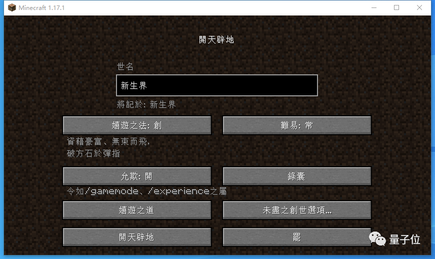 在1.17.1正式版里,选择文言文作为游戏语言后,加载画面上来就是一个鸿蒙初开。