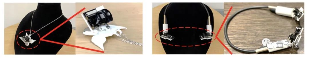 项链式仪器包含一组Neck Face,由红外摄像头OV5647、近红外LED和红外带通滤波器组成,佩戴时位于下巴正下方;颈带式仪器包含两组,佩戴时分别位于两侧锁骨位置。