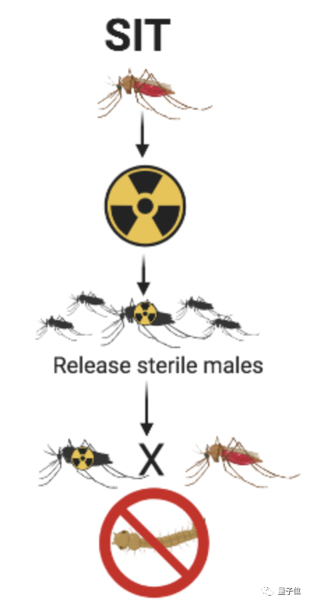 这里的核技术是通过核辐射让蚊子不孕不育,这种方法叫做SIT (Sterile Insect Techniques)