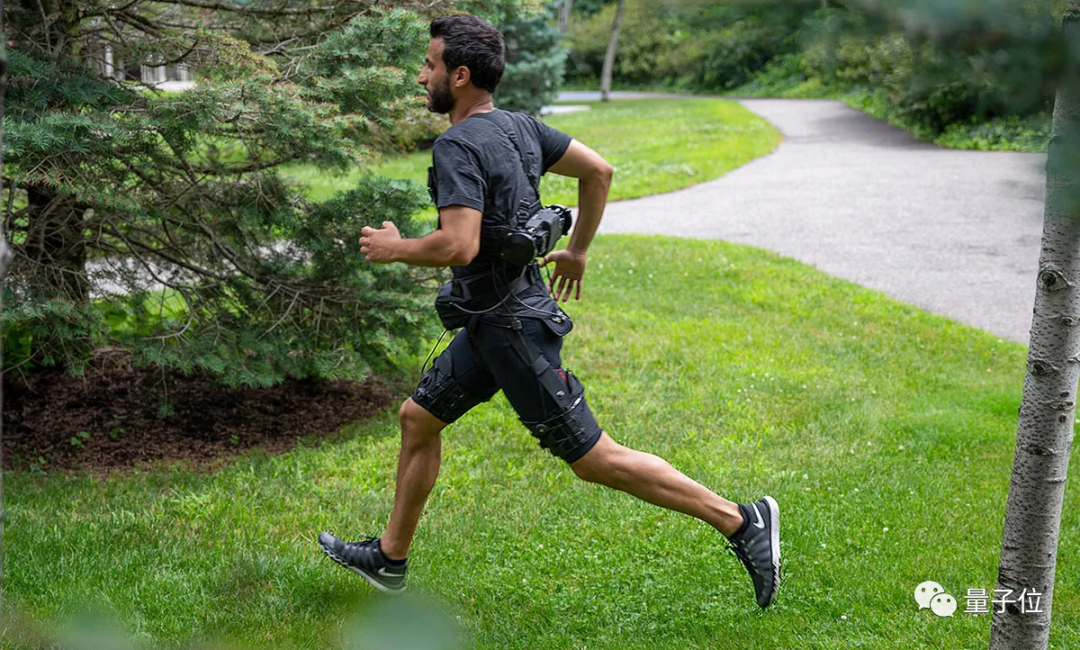 并且类似的设备其实并不少,比如哈佛大学就研发过一种用于病人康复的“机械短裤”,穿上它走路,代谢负荷可降低9.3%,穿上它跑步,也能跑得更快更轻松。