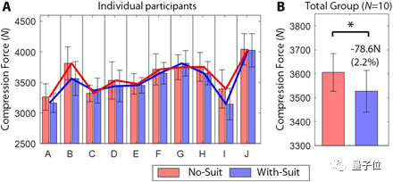 可以看到,虽然有两位参与者的脊柱负担没有下降,但总体而言:穿比不穿更能减轻负担。