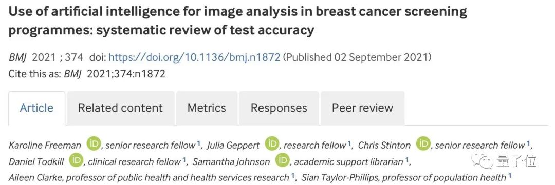 受英国国家筛查委员会委托,他们对AI在乳腺癌筛查项目中检测乳腺癌的准确性进行了调查。