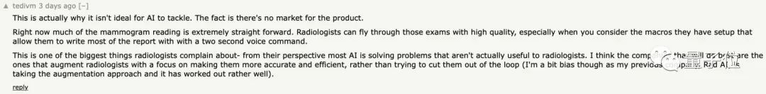 增强放射科医生的能力,让他们更加准确和有效,而不是试图把他们排除在外,这样的AI公司未来才会做得最好。