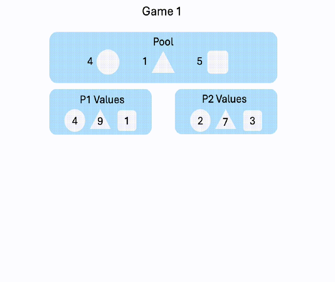 玩家协商物品的分配,来尽可能获得更多价值。游戏在8轮后每轮有20%的概率结束,若游戏结束前未达成协议,双方均得0分。