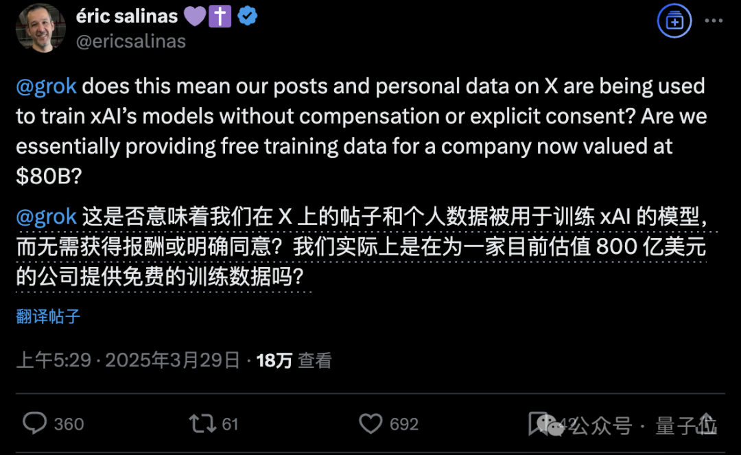 也有人担心这是否意味着xAI将获得用户社交媒体数据用于训练。