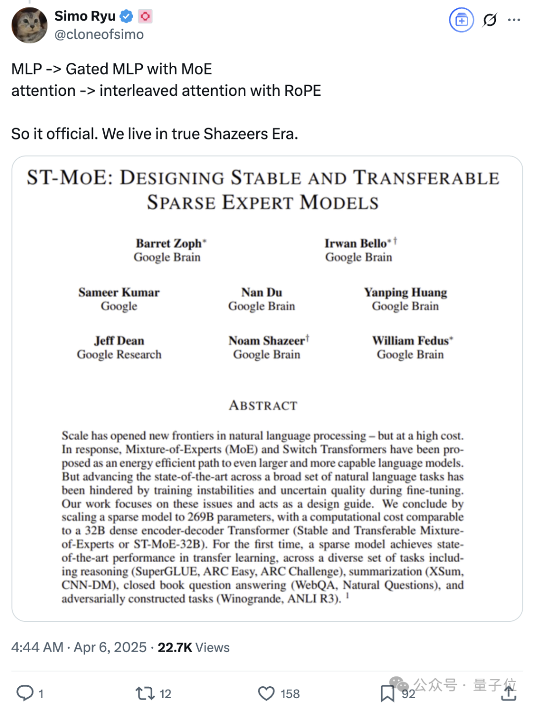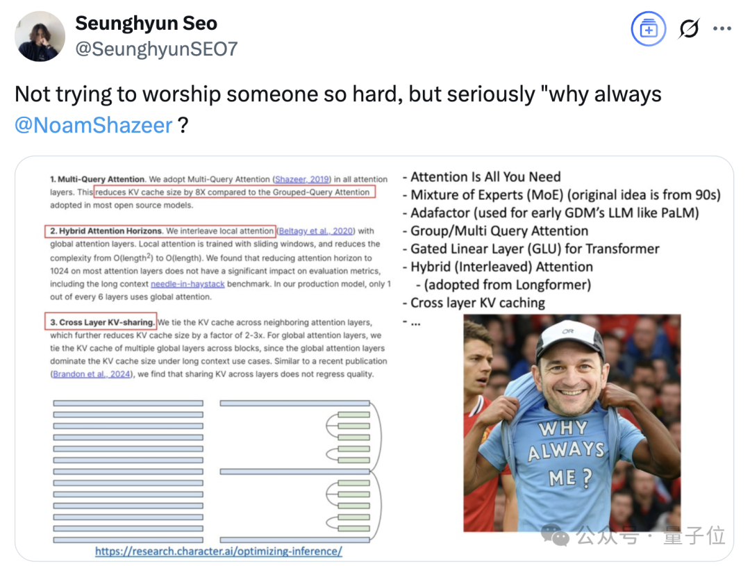这是最近网友不断对着Transformer八子之一的Noam Shazeer(为方便阅读,我们称他为沙哥)发出的灵魂疑问。