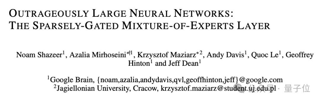 在《Attention Is All You Need》前后,沙哥还作为一作同三巨头之一、图灵奖得主Geoffrey Hinton以及谷歌元老级人物、第20号员工Jeff Dean等合作发表了另一篇具有代表性的工作——