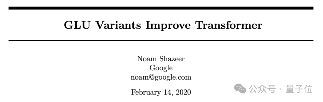 另外,他还提出了被广泛应用于各种Transformer模型中的Gated Linear Layer(GLU)。