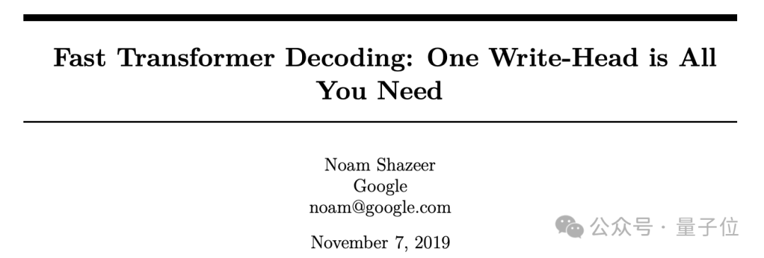 作用于大模型推理加速的Multi Query Attention(MQA)也是出自他的手笔。