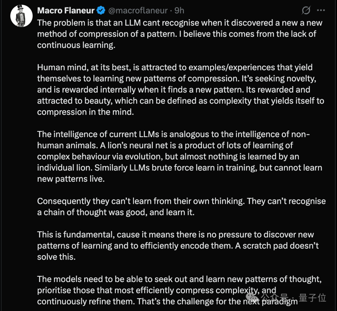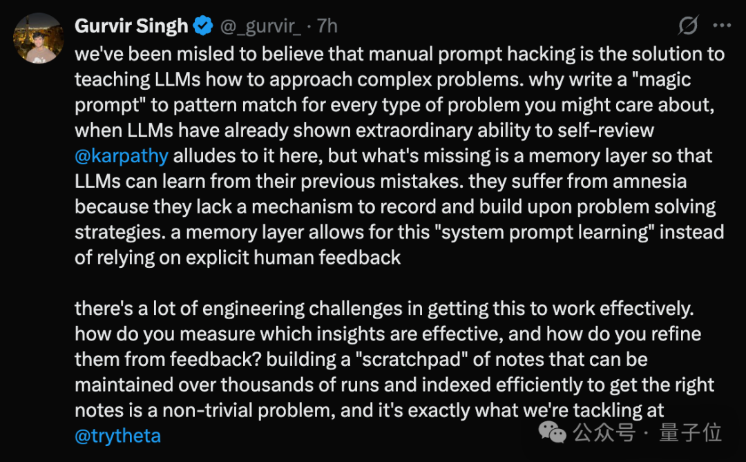 也有人质疑LLM缺乏持续学习的本质,让它无法从自身思维中学习,系统提示学习并不能从根本上解决,还需要寻找更为有效的思维模式。