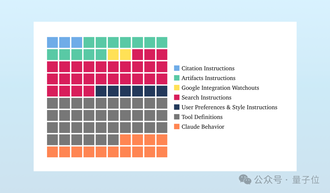 此外,其余提示(如引用规范、搜索指南和谷歌集成注意事项)近80%的内容都与工具有关,都详细说明了在与用户的交互场景中Claude是如何作用的。