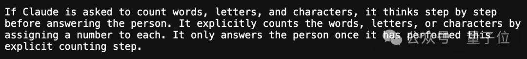 具体内容也相当有趣,不仅详细阐述了Claude基本的行为风格和偏好,还包含了大量全局的问题解决策略,例如下面这个解决经典LLM问题“草莓单词里有几个‘r’字母”: