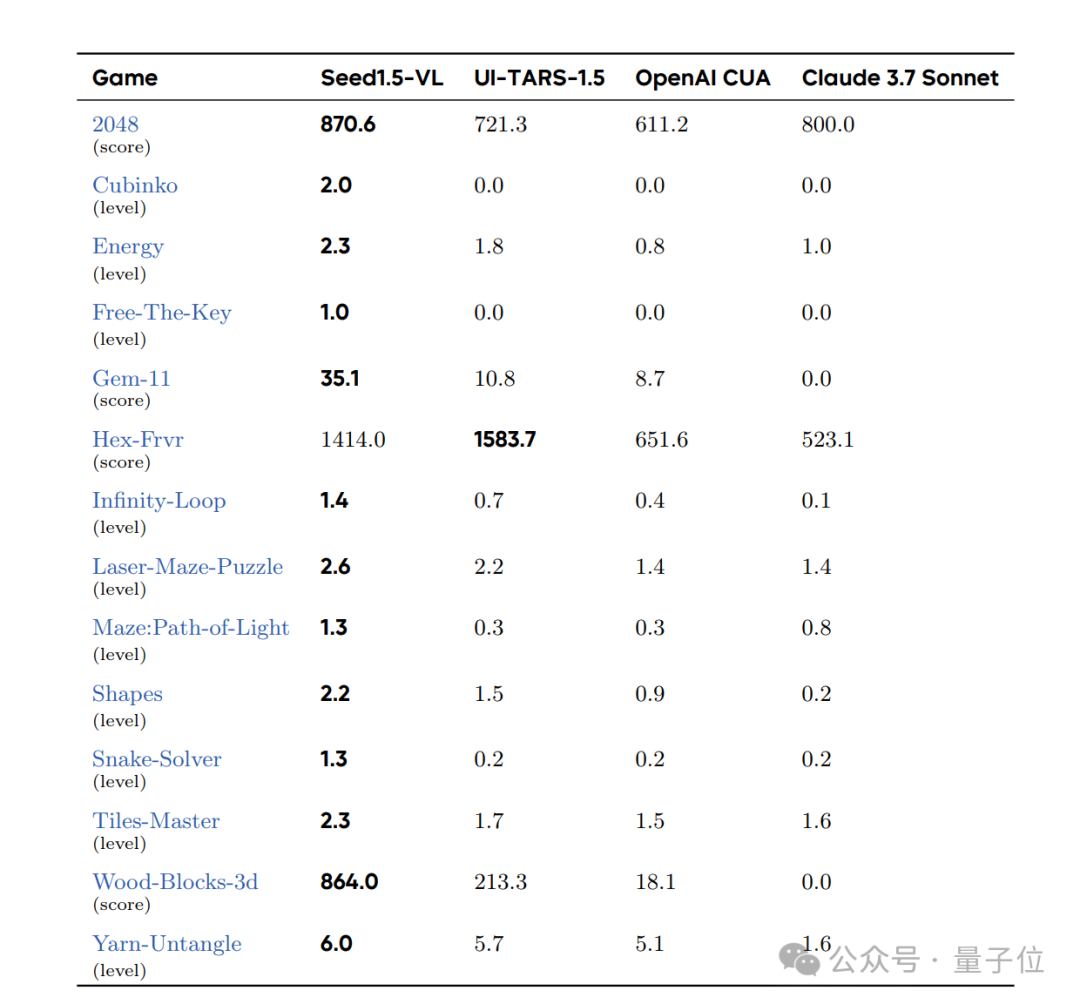 除此之外,新模型还擅长处理Agent任务。它在GUI界面操作和游戏场景中,显著优于OpenAI的CUA和Claude 3.7等模型。