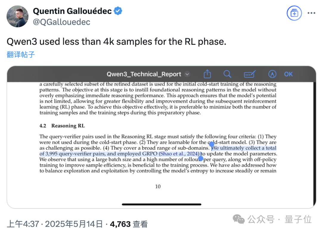 比如这位Hugging Face研究员感叹,Qwen3在RL阶段的样本量,竟然不到4k。