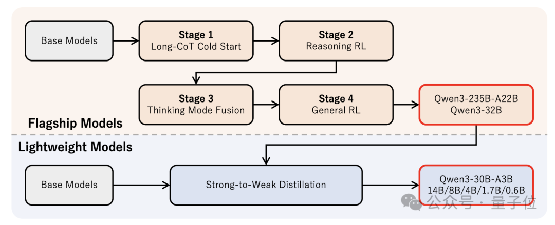 除了这样的训练模式之外,Qwen3家族还采用了“大带小”的数据蒸馏模式。