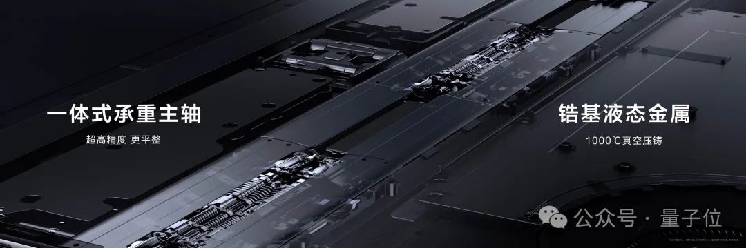 其中的一体式承重主轴采用锆基液态金属材料,在近1000℃真空压铸成型。