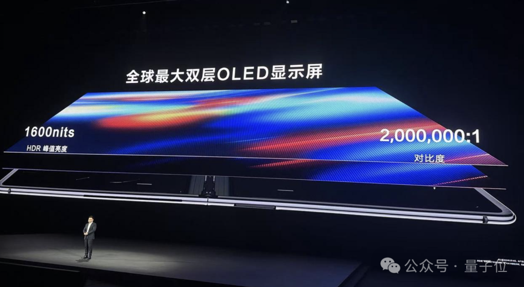 华为折叠屏电脑使用了双层OLED屏幕,峰值亮度1600nits,对比度可达2百万:1。