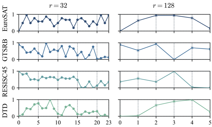作者针对不同数据集,使用不同的SVD片段来初始化进行分析发现,不同任务对应的最佳SVD片段不同,同时其很可能在中间片段表现最好。