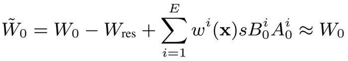 另一条提升LoRA表现的路径是引入混合专家架构(Mixture-of-Experts, MoE)。然而,复杂的梯度动态使得在LoRA MoE架构中应用SVD初始化方法面临较大挑战。
