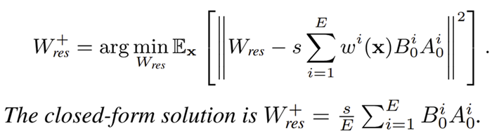 利用该假设,对于等效权重对齐,研究人员推导出SVD初始化中使接近,需要减去额外减去矩阵最优期望为: