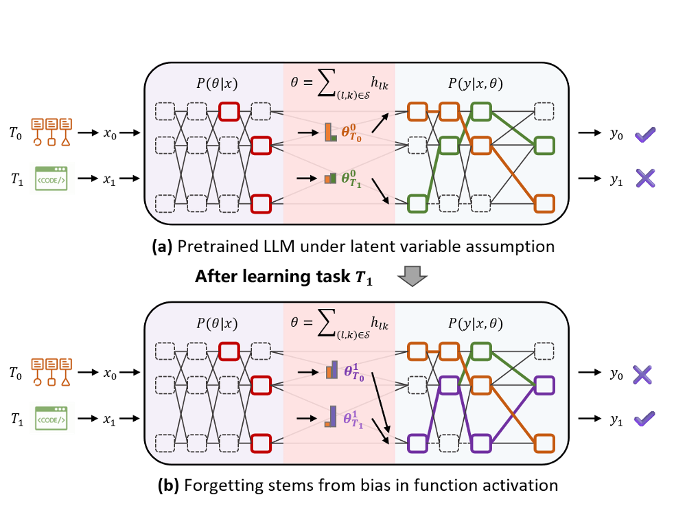换句话说,模型并没有忘记之前学到的任务处理能力,而是这些能力未被正确激活,反而被新引入的能力所掩盖。