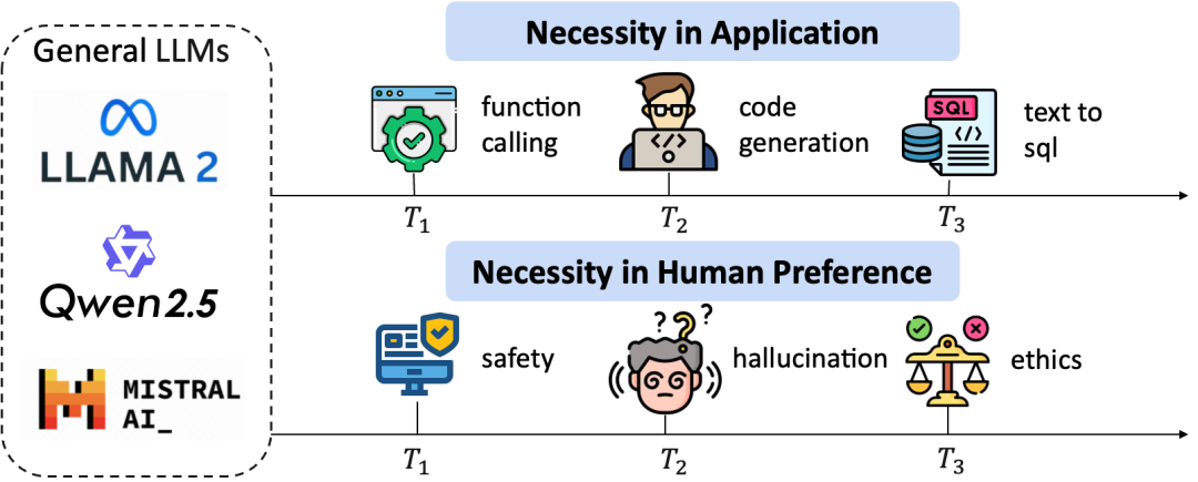 例如,一个通用语言模型在学习新增的用户指令处理后,面临数学推理能力的显著下降。
