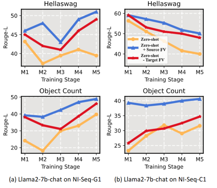 研究人员还设计了一种函数向量引导的训练方法FVG,在微调过程中可以有效保留并对齐函数向量,并在多个持续学习数据集上显著保护了模型的通用学习能力和上下文学习能力。