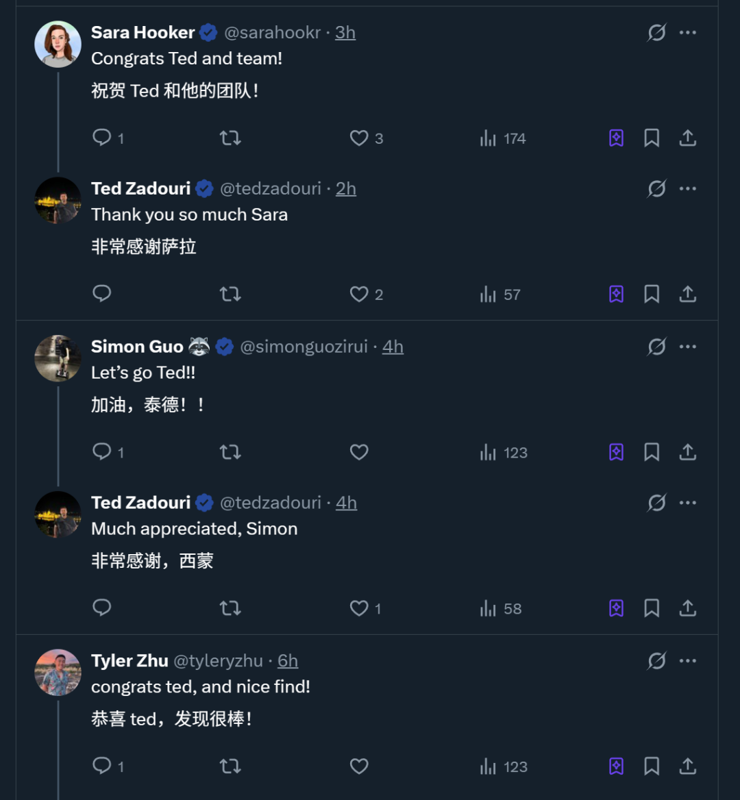 之前曾在英特尔有过两段实习经历(研究深度学习),还短暂在AI创企Cohere担任研究员。