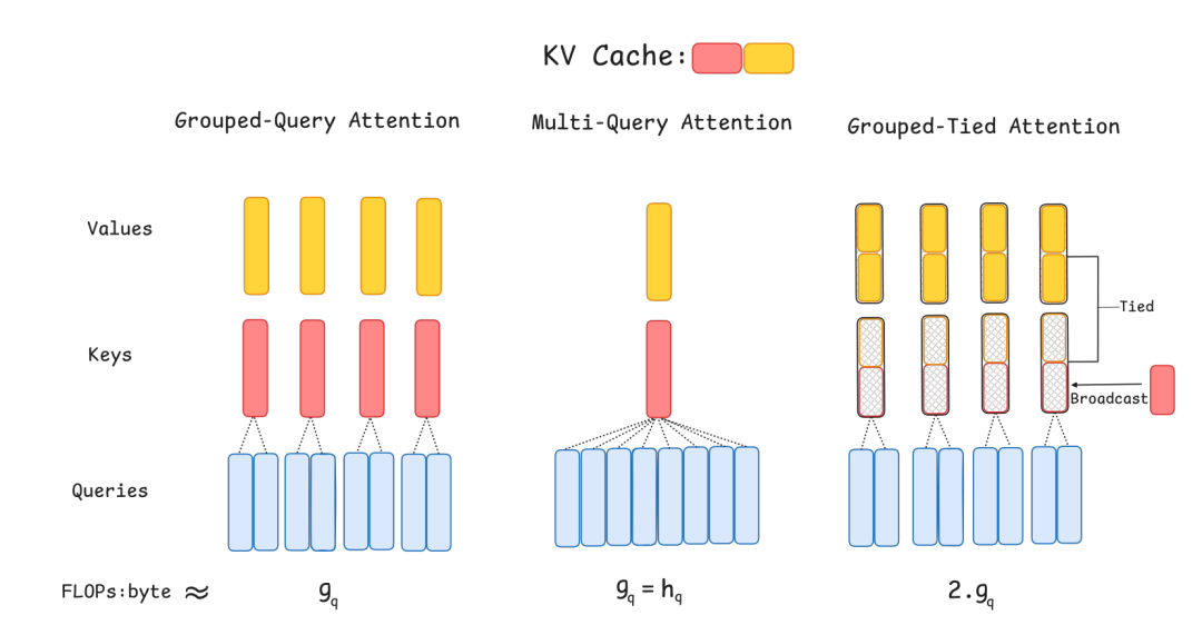 GTA的核心设计思路是:将不同查询头的键(Key)和值(Value)状态进行组合与重用,减少内存传输次数。