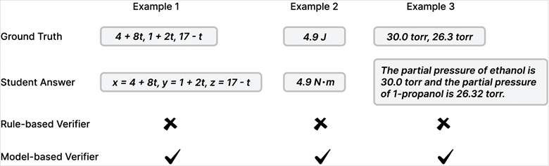 传统的规则式验证器通常依赖严格匹配或符号比较进行答案判定,虽然适合数学任务,但在更广泛的推理领域存在明显不足,如匹配规则僵化,缺乏语义理解,难以适应复杂领域。
