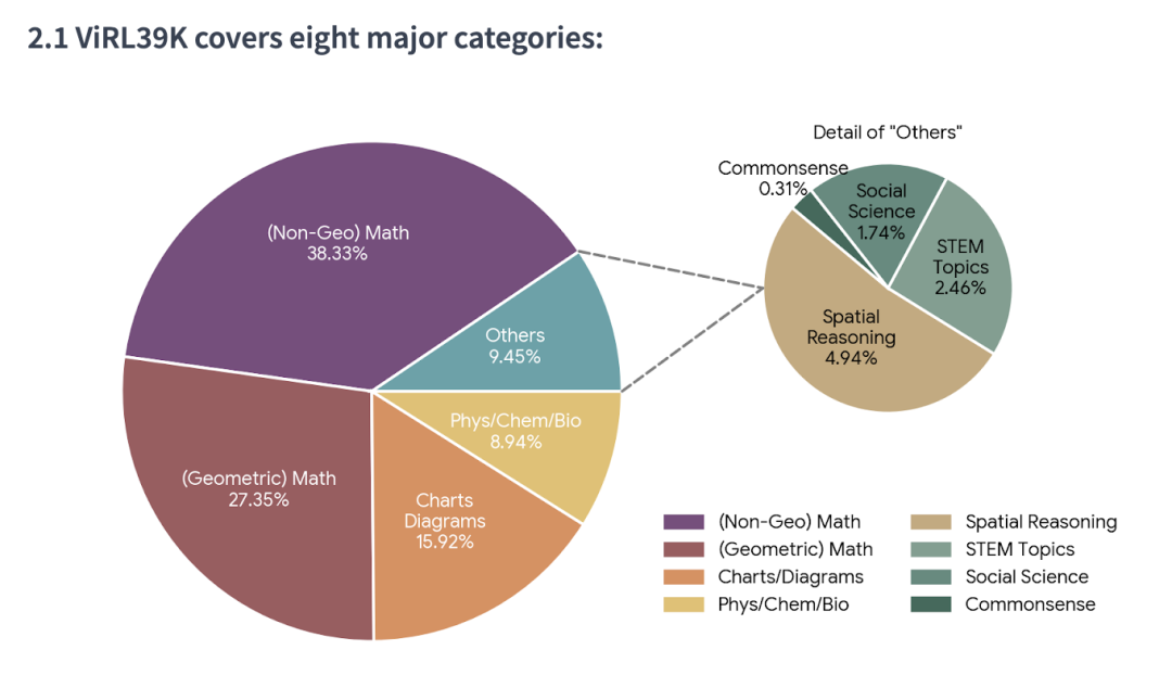 这39K数据,不仅囊括八大主题,包括逻辑推理、图表推理、空间推理、科学问答等。