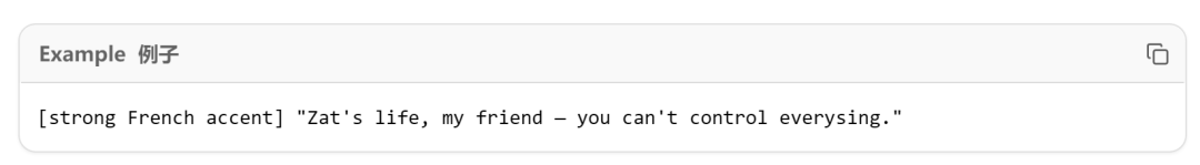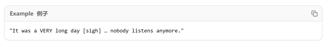 特殊标签:如[strong X accent](强调某口音)、[sings](唱歌)、[fart](放屁声)等,用于创意应用。