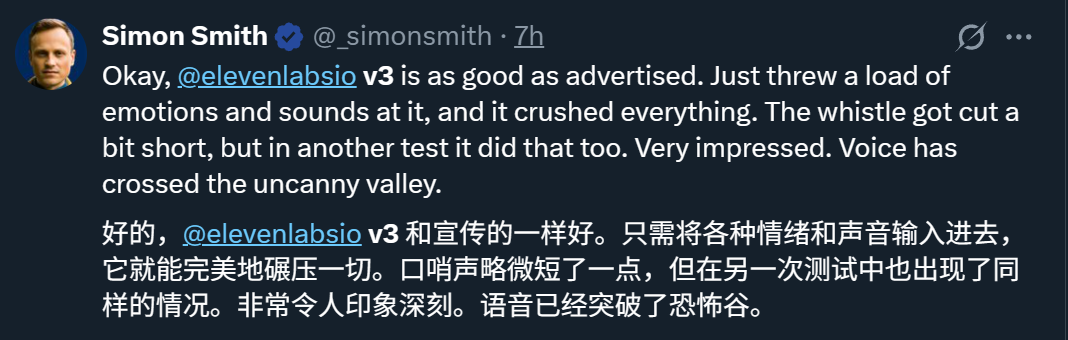 该网友同样表示,Eleven v3的情感识别功能令人印象深刻。