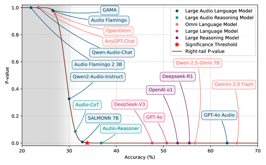 不过,你猜怎么着?面对1000道多步骤音频推理题时,30款AI模型竟然几乎全军覆没,很多开源模型表现甚至接近瞎猜。