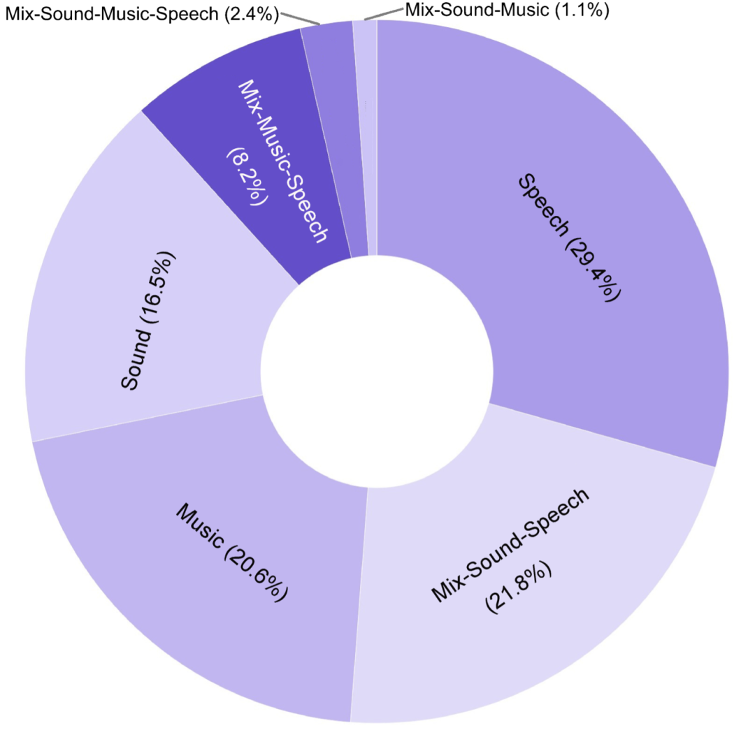 △MMAR音频数据的语音、音乐、环境事件声音和他们混合的类别分布